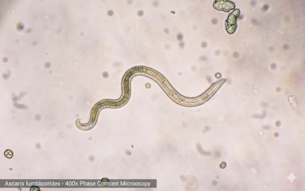 - Charakterystyka: To jeden z największych i najbardziej rozpowszechnionych pasożytów człowieka na świecie, infekujący szacunkowo 772–892 milionów ludzi.37 Dorosły osobnik przypomina wyglądem dżdżownicę, osiągając od 15 do nawet 40 cm długości, i bytuje w świetle jelita cienkiego.38