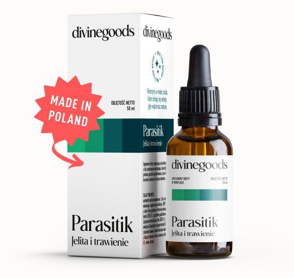- Parasitik Jelita łączy ekstrakty z orzecha czarnego, piołunu i goździka – roślin znanych z tradycyjnego wspierania higieny układu pokarmowego.