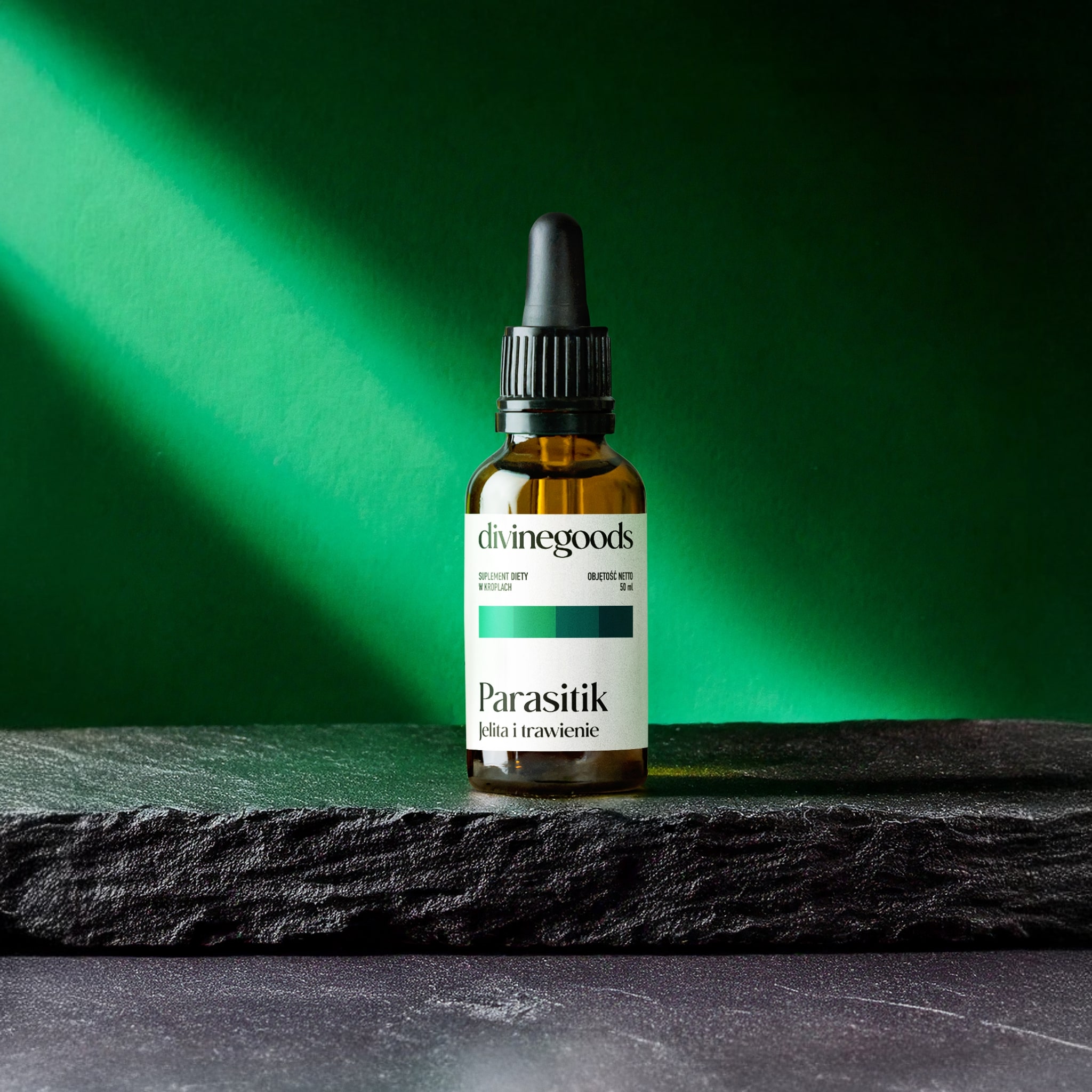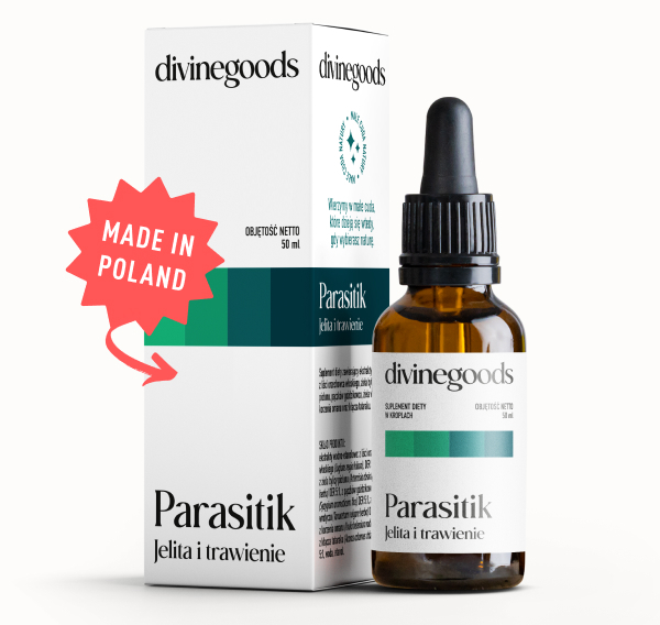 - Parasitik Jelita łączy ekstrakty z orzecha czarnego, piołunu i goździka – roślin znanych z tradycyjnego wspierania higieny układu pokarmowego.