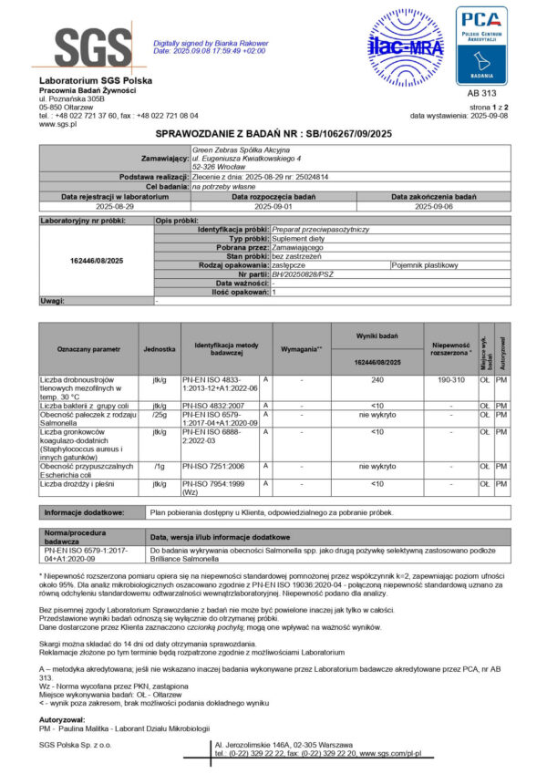 Suplement diety nie może być stosowany jako substytut zróżnicowanej diety i zdrowego trybu życia.